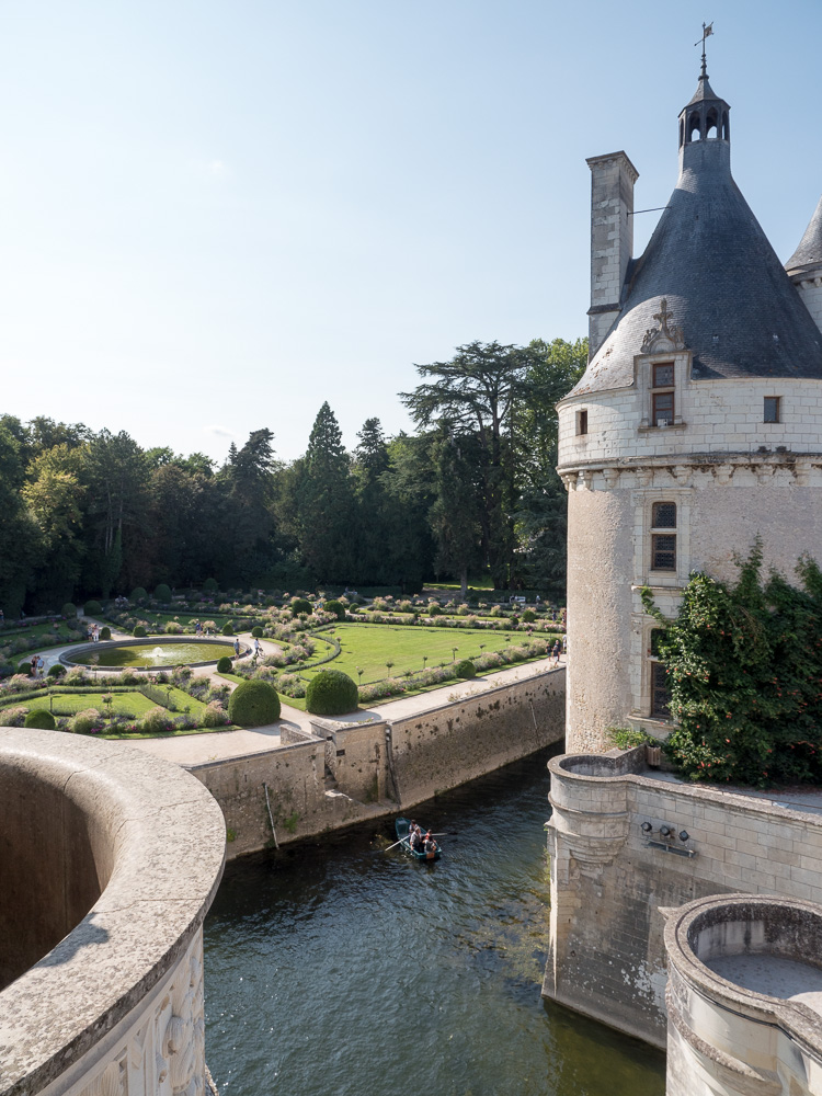 While waiting for our reservation time, we walked in the elegant gardens and watched the Cher flow under the chateau’s arches. The weather was perfect and boaters dotted the water’s surface.