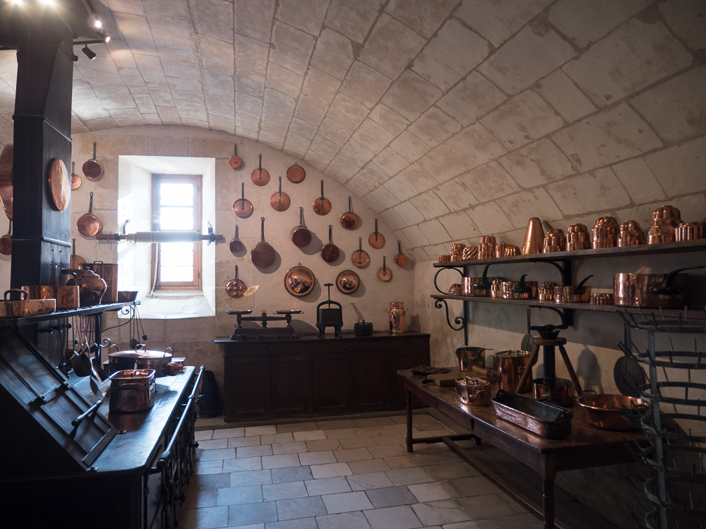 Fortified by wine and all that goes with, we toured the chateau. The kitchen was fascinating, especially as many utensils are basically unchanged from their original and long-ago design.