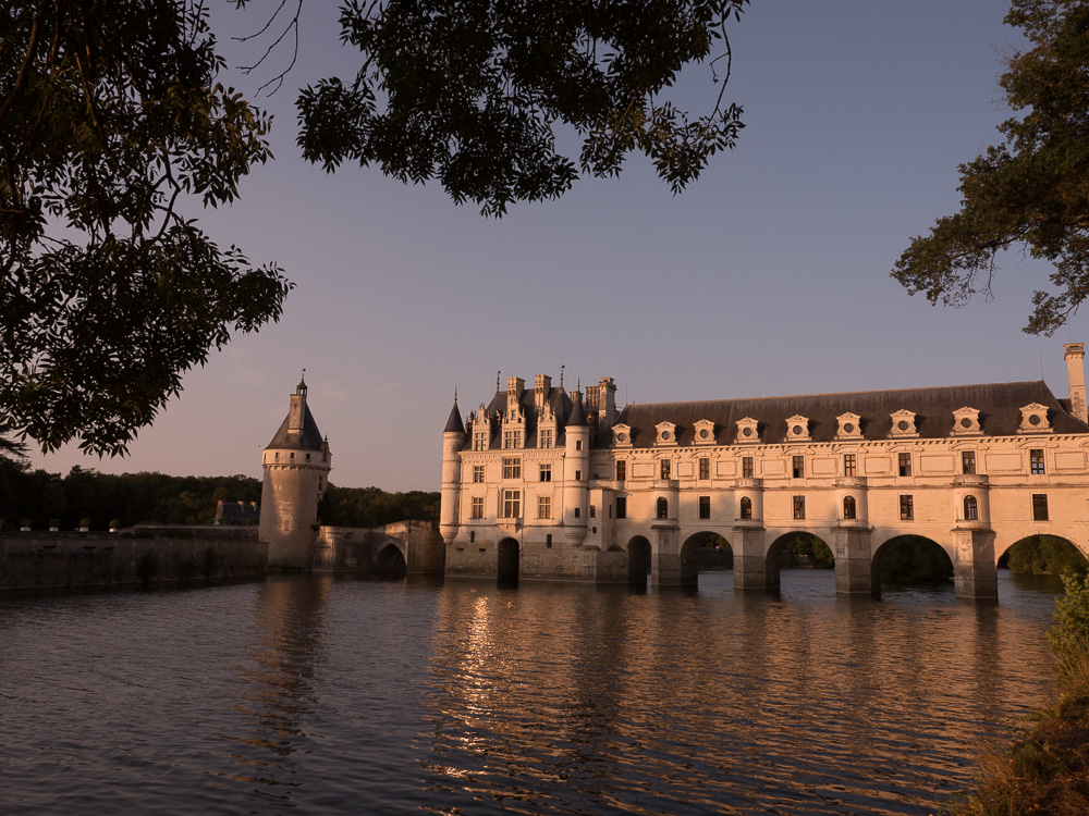 By the time we were ready to leave, the drawbridge between the castle and the wooded side of the Cher was raised, cutting us off from some of the best views of the chateau. The bridge guard pointed out another bridge, carrying a road over the river downstream. We were thus able to cross the Cher, and walk the wooded banks until Maurice found the perfect vantage point, before concluding one of our best days in the Loire Valley.