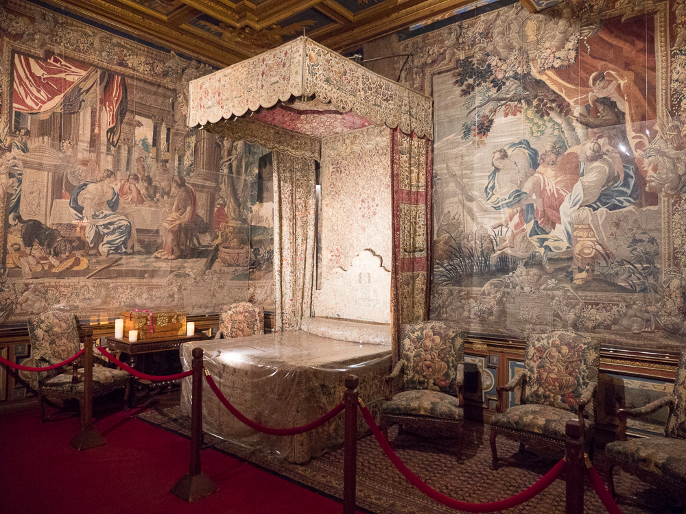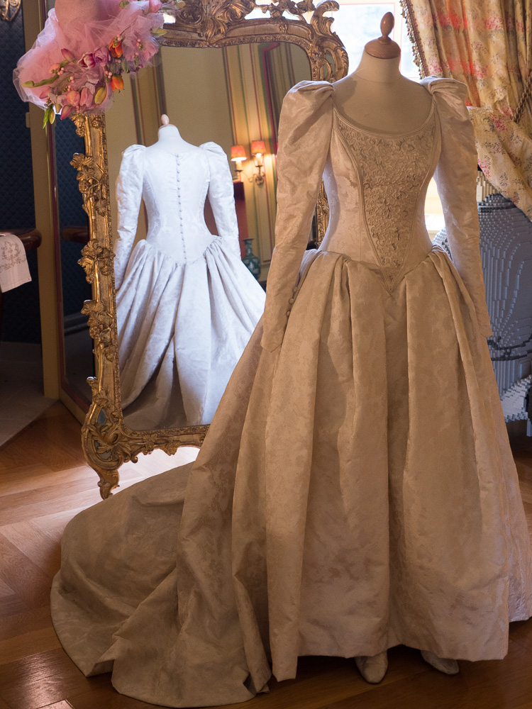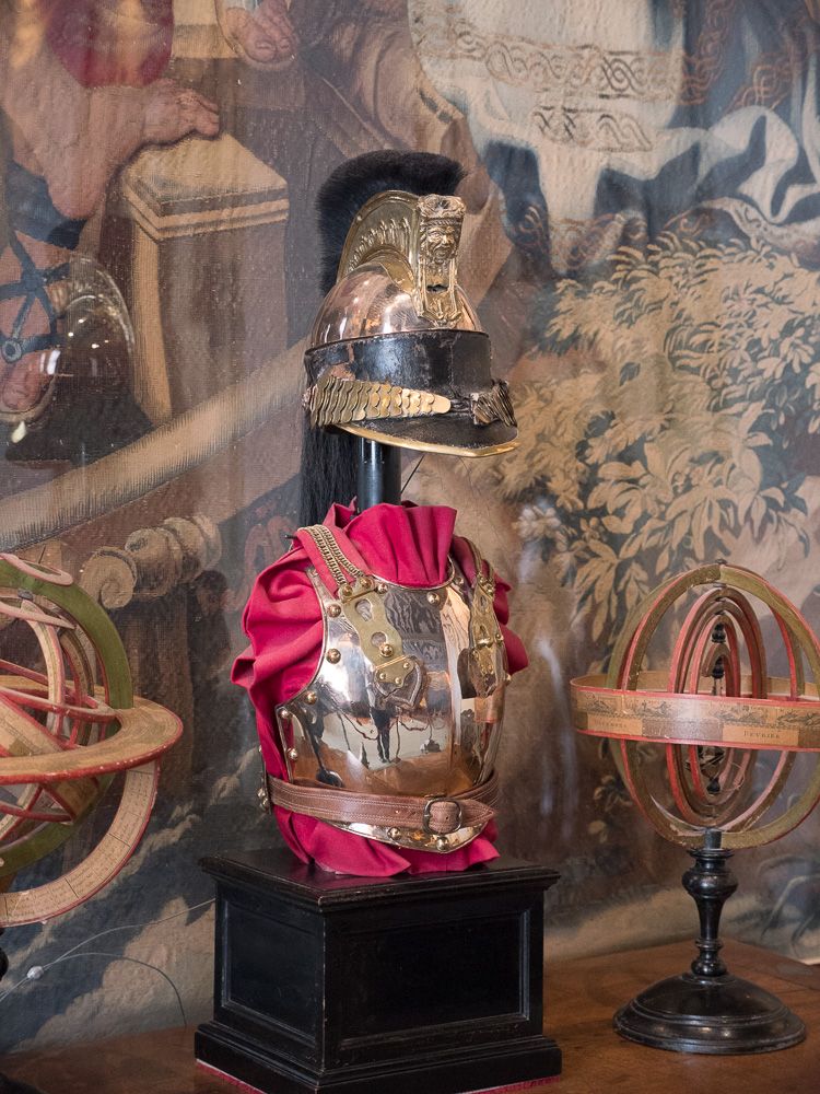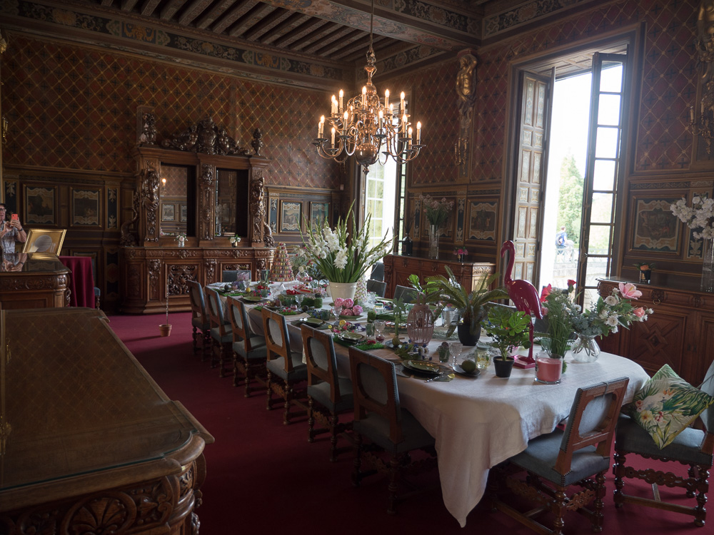 Two special exhibits in the chateau caught our attention during the visit. Outside the dining room are posters on table settings through the ages. Did you know Napoleon demanded that knives and forks be pointed toward the body when placed on the table because he always caught his lace cuffs in their points when reaching for his wine? And knives were the only cutlery at the table for some time, employed in spearing meats from the serving plate and picking teeth.