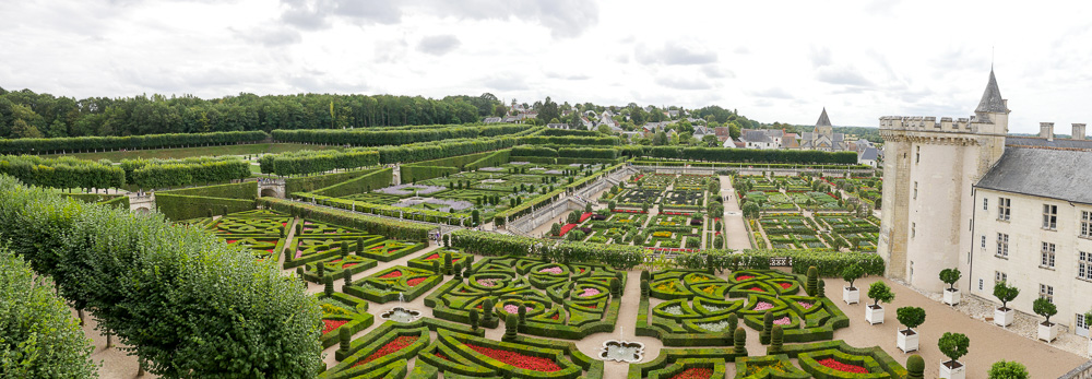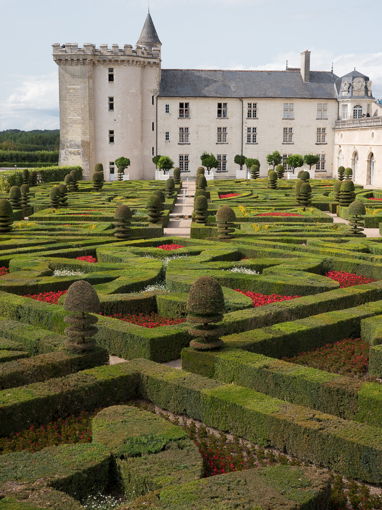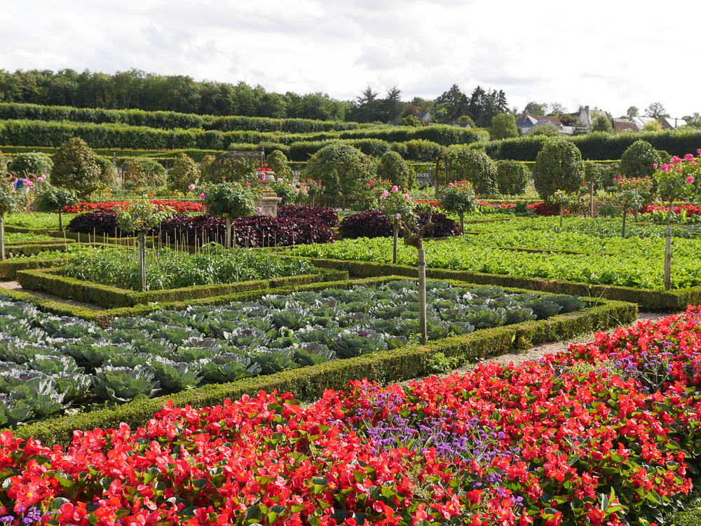 The chateau of Villandry is best known for its gardens, and that is appropriate. They are magnificent whether seen from above or at eye-level. Even the potager or vegetable garden is a work of art.