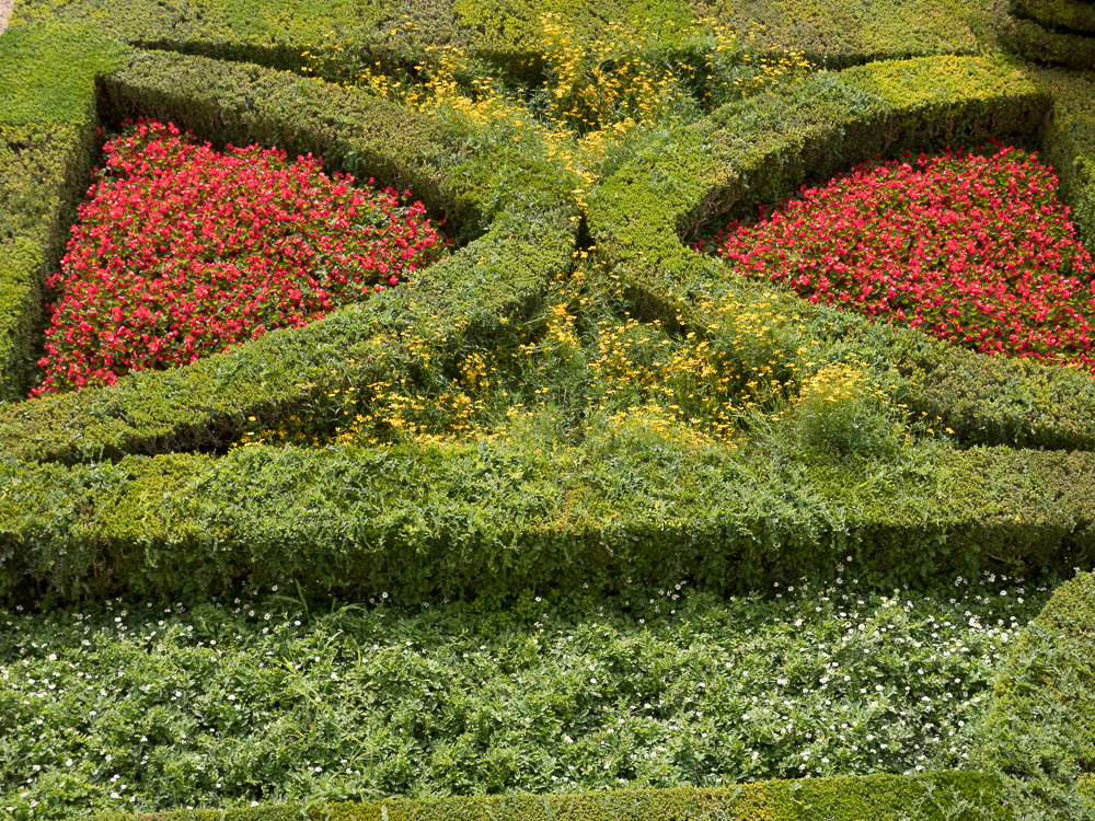 There are six formal gardens and the large potager, which is really nine plots united by borders and color schemes. The flower gardens have themes such as music and love. There is a maze for children and a play area, as befits a castle that became a beloved family home. The Carvallo family still owns the property and manages the garden their grandparents, and now great grandparents, created.