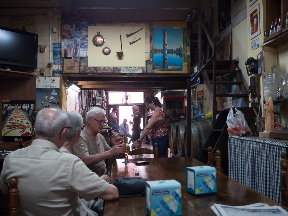 Other culinary treats included cava, Spain’s answer to champagne, and vermouth where each brand, whether an in-house creation or store-bought, has a distinctive herbal taste, always pleasant and ever changing. Ninety-five percent of cava is produced in Catalonia so it’s not only readily available but drunk with meals and in-between. Our glasses, for example, were poured at 11:30 am. We also visited a little neighborhood bar, where regular patrons gather daily to catch up on the neighborhood gossip.