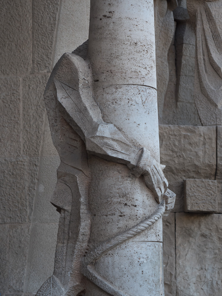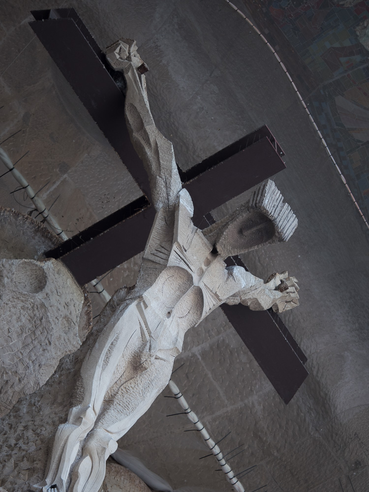 Gaudí’s plans included construction techniques yet to be invented, so the construction of parts of the basilica was not possible in his time. Gaudi was killed by a streetcar before even the completion of the first of three of the facades, the Nativity Facade. The work continues. The goal, we are told again and again here, is to finish by 2026, the 100th anniversary of Gaudi’s death. Some skepticism is in order, seeing that there are at least five more towers, including the Jesus tower that will be the highest man-made structure in Barcelona, yet to be completed. Also still under construction is the Glory Facade, the most elaborate.