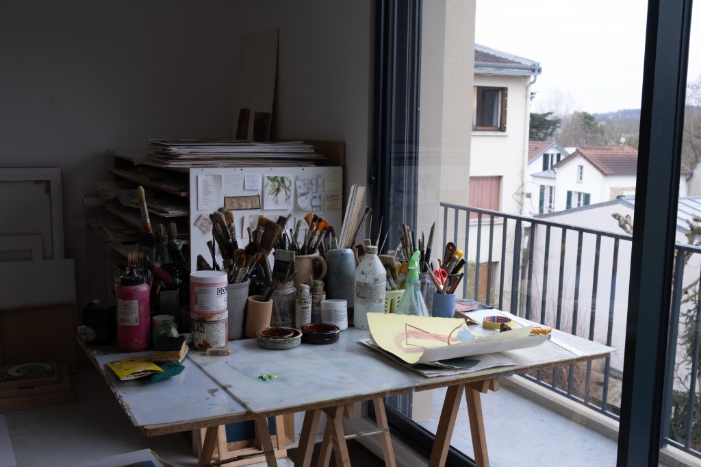 Saturday, we went with Edith for dinner at the home of our friends Susy and Richard, who now live in the suburb of Ville d’Avray, easy to get to thanks to the excellent train system here. We got a tour of their beautifully renovated home, which includes Susy’s well-lit art studio.