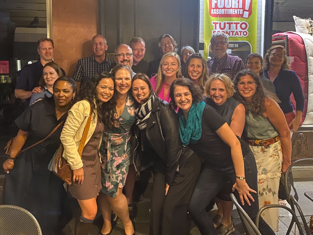 After my walk, it was time for the group to get together one last time, for the farewell apericena. We were served “heavy apps” (really, a light dinner), and Elizabeth had arranged for a wine maker friend of hers, Riccardo Sobrino from Cascina Delle Rose, to bring us (you probably wouldn’t guess) more wines to taste! There were speeches, emotional farewells, and lots of laughs.