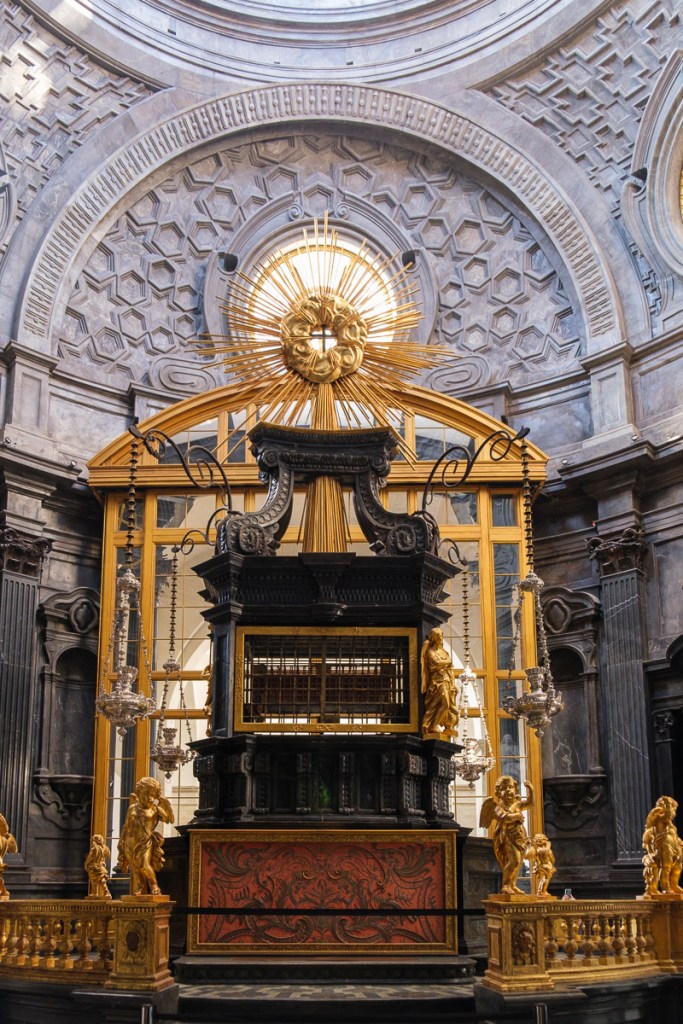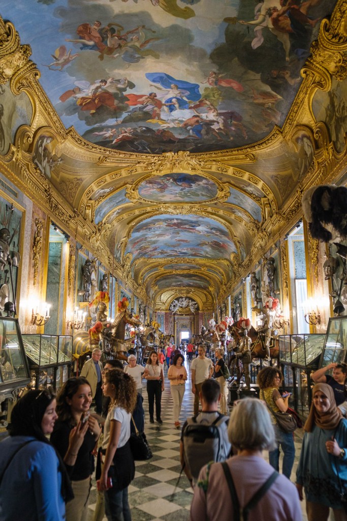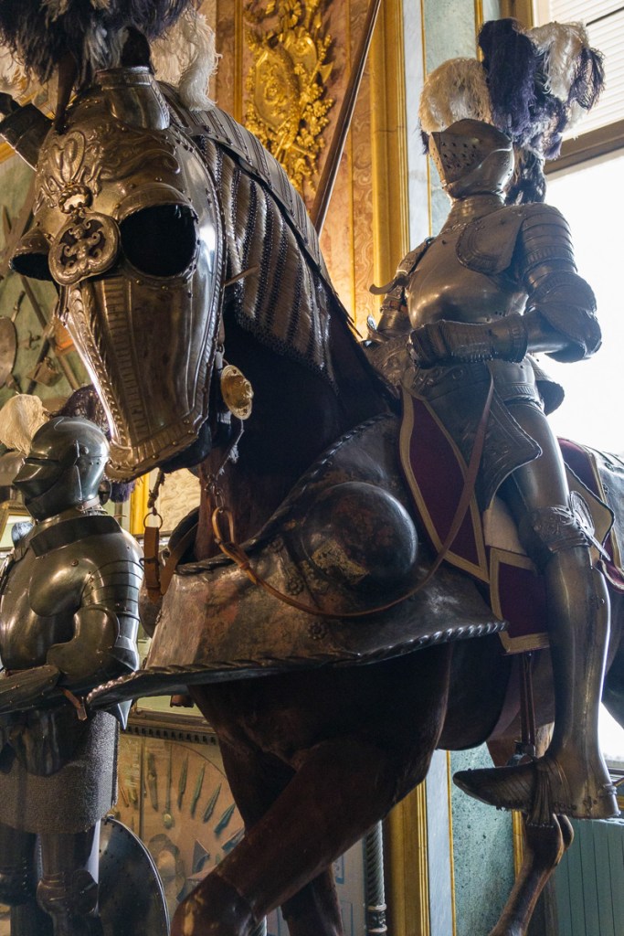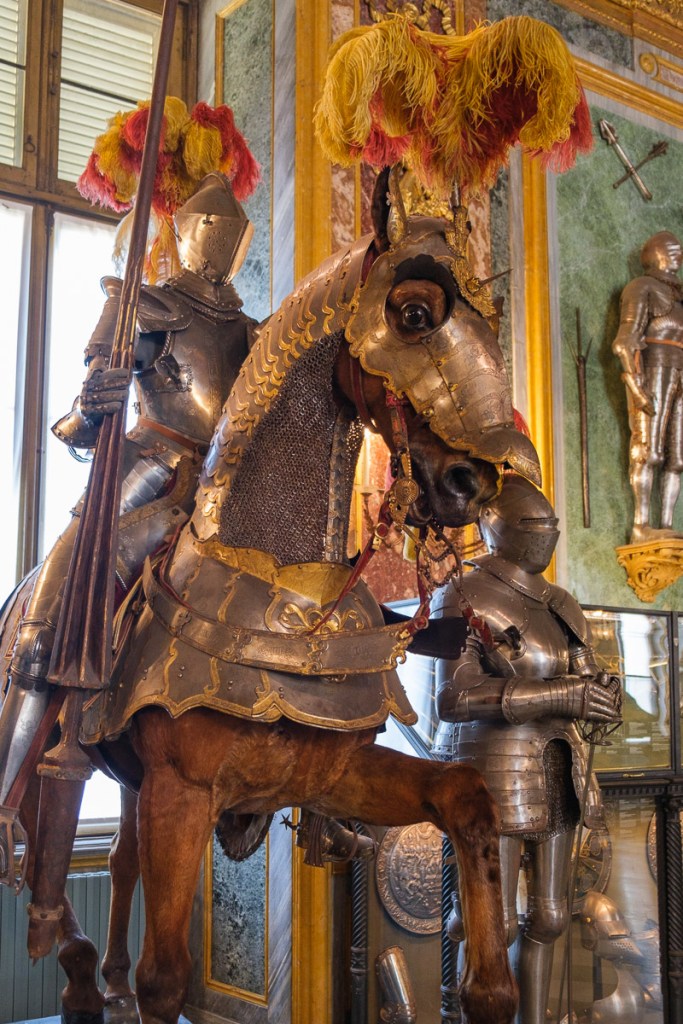 After lunch, we took a quick tour of the Royal Palace, which included the impressive Royal Armoury of Turin — with weapons and armor for horse and human from the 13th century through the 18th century (with a few more modern guns) — and the Chapel of the Holy Shroud, in a connecting space between the Palace and the Cathedral. (The shroud is only displayed when the Pope orders it, a few times a century.)