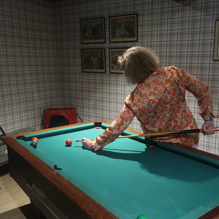 We departed Larressingle for the spa town of Castéra-Verduzan and its thermal baths, in operation since Roman times. The baths are said have healing properties. Since we arrived just before closing, our group left the spa and walked to the nearby restaurant Le Florida, seeking the healing properties of another fabulous meal. We were early for dinner, so Ariane and I killed some time by playing a couple rounds of pool.